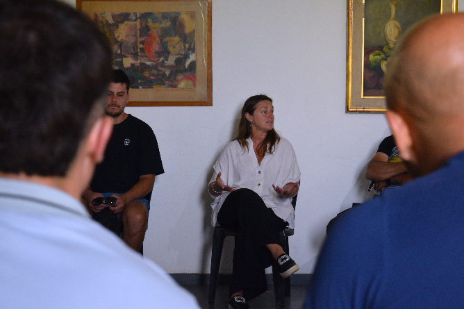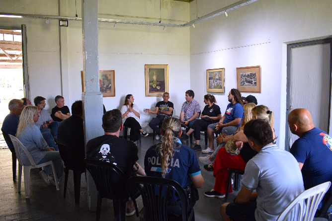 La secretaria de Seguridad Ciudadana Mariela Moscarella encabezó una reunión con dueños de bares, boliches y espacios de esparcimiento en el Centro Cultural Municipal Vieja Estación.