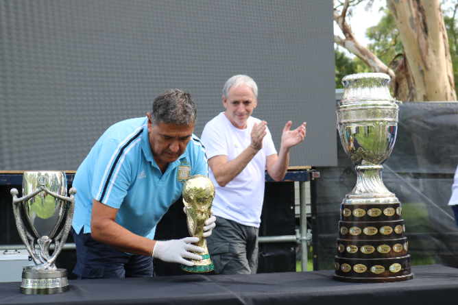 El evento estuvo cargado de emoción, visible en los rostros de las personas de todas las edades que se acercaron a ver de cerca la Copa del Mundo, la Copa América y la Finalissima, vistiendo orgullosos sus camisetas de Argentina.